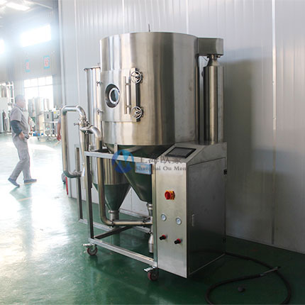2、霧化:噴霧干燥機的霧化系統必須確保霧滴大小分布均勻,這是至關重要的。因為這樣才能確保產品質量的合格率。